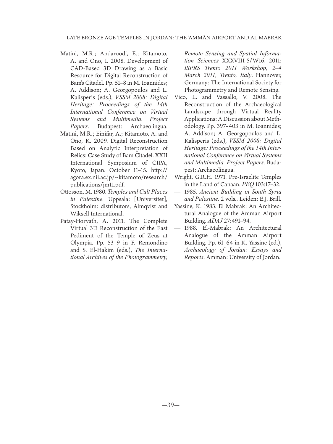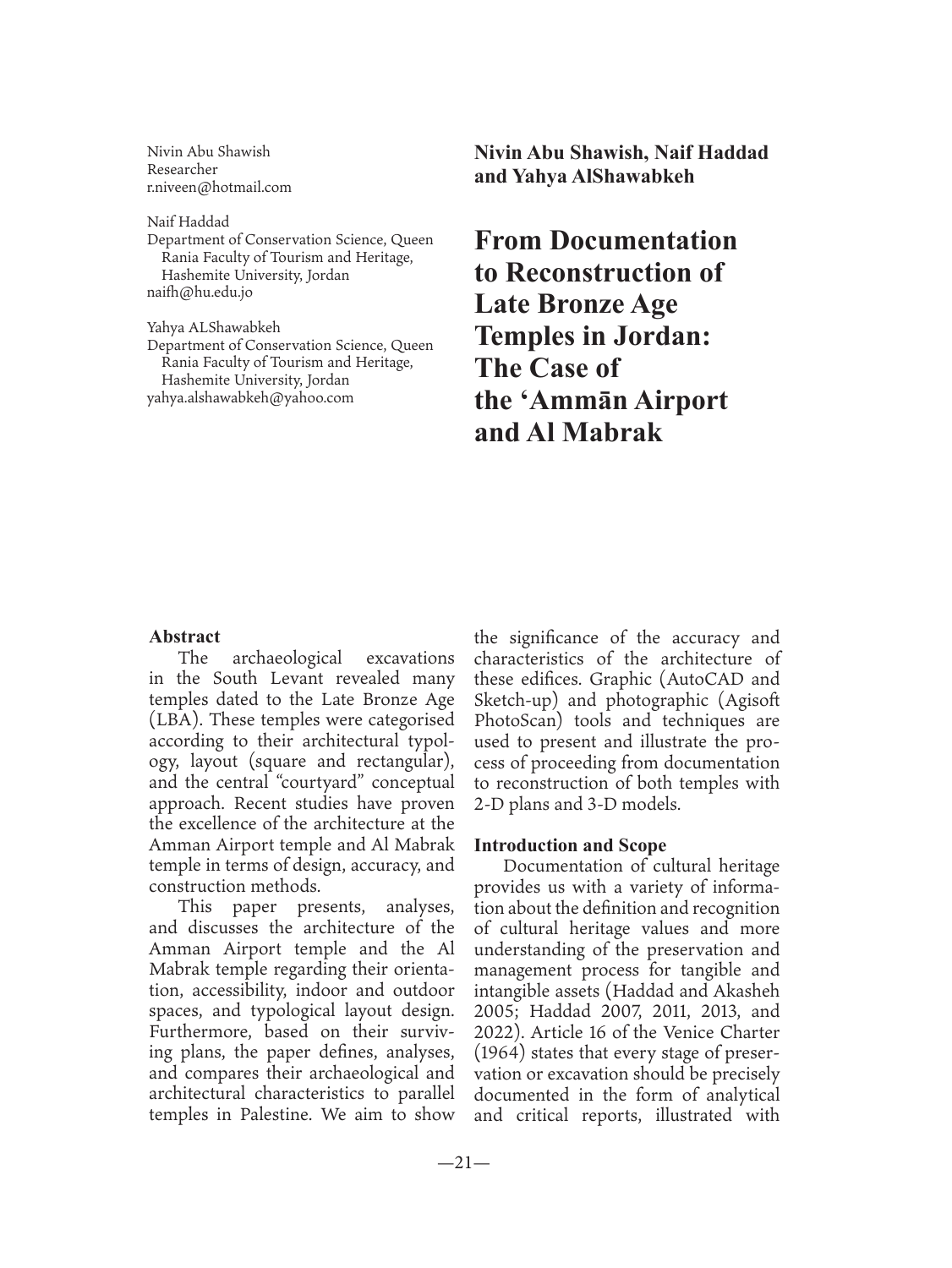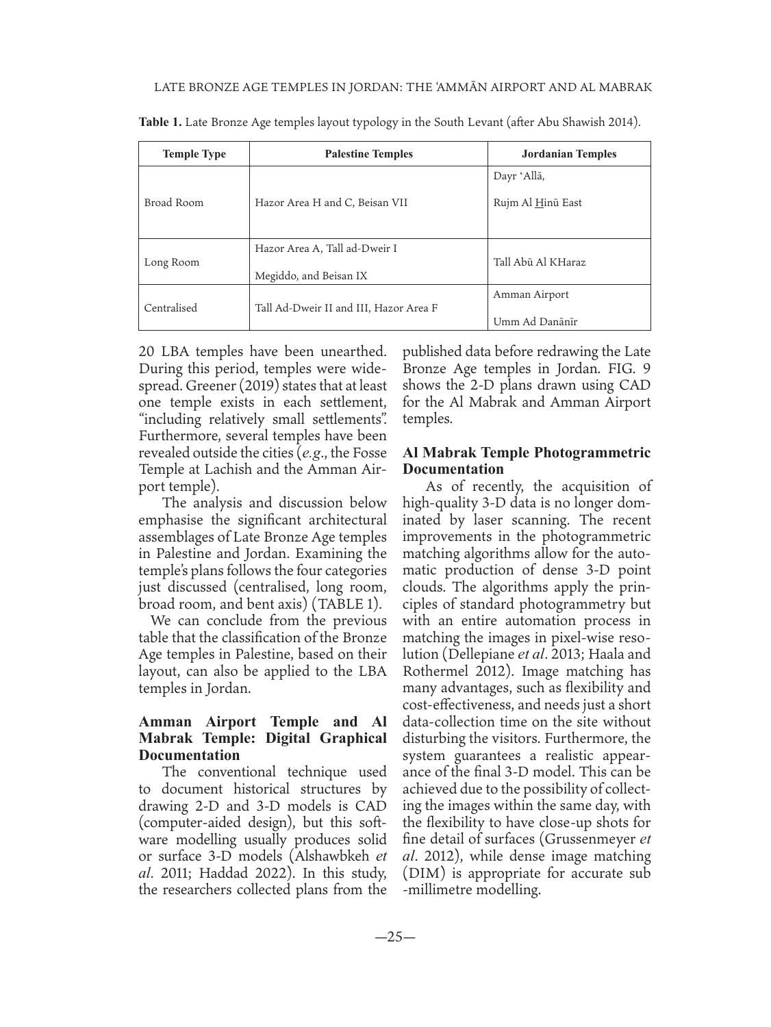From Documentation to Reconstruction of Late Bronze Age Temples in Jordan: The Case of the ‘Amman Airport and Al Mabrak
