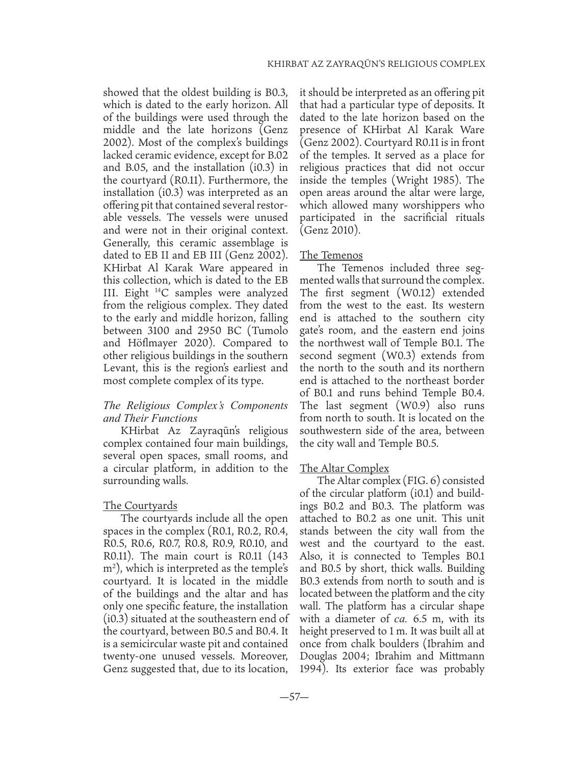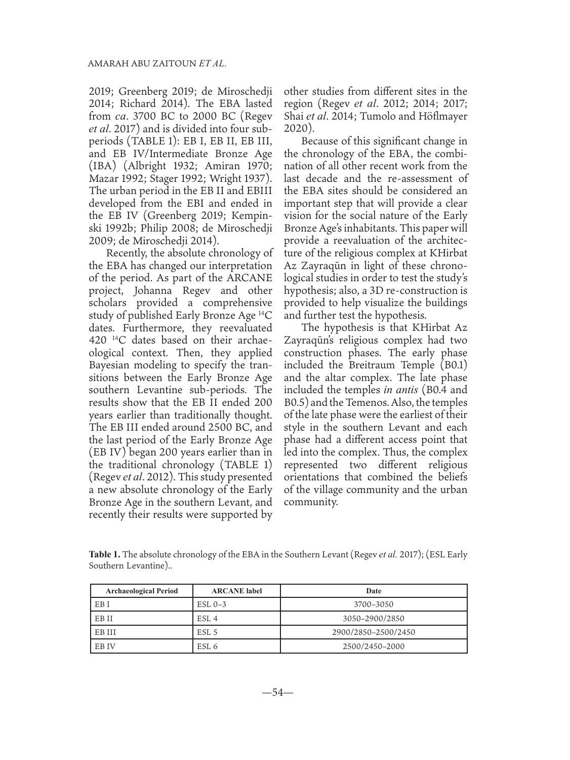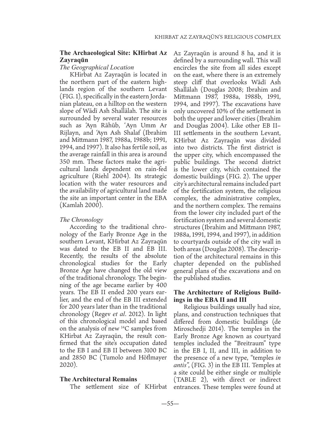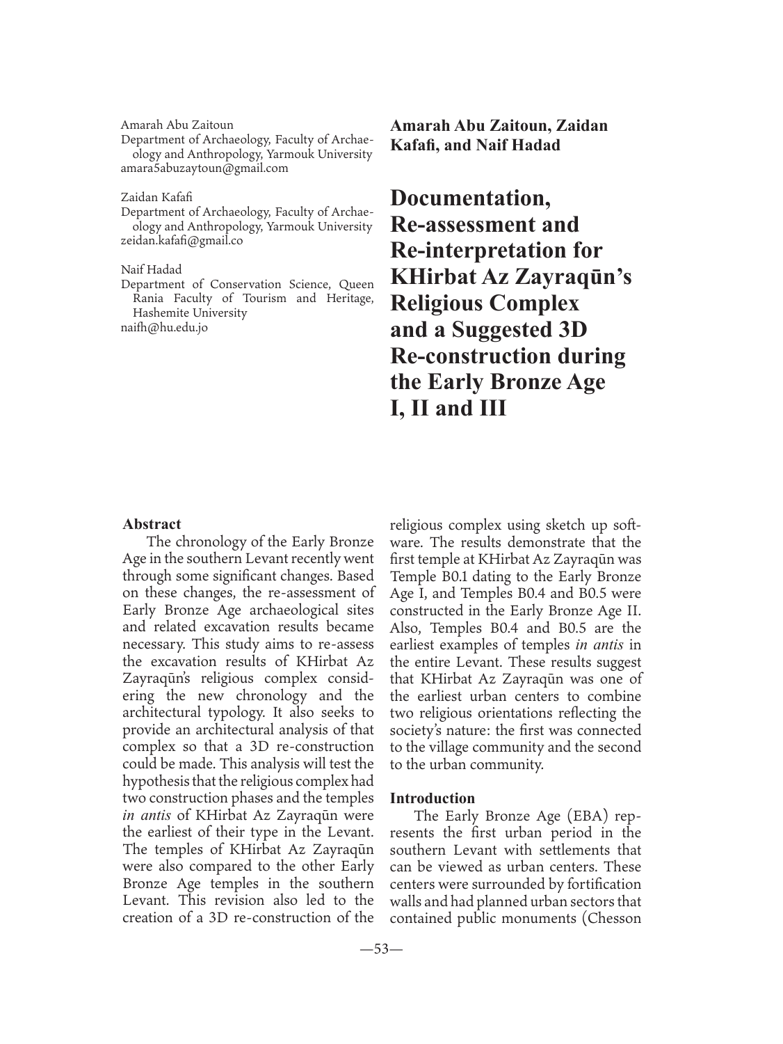 Documentation, Re-assessment and Re-interpretation for KHirbat Az Zayraqun’s Religious Complex, and a Suggested 3-D Reconstruction during the Early Bronze Age I, II and III