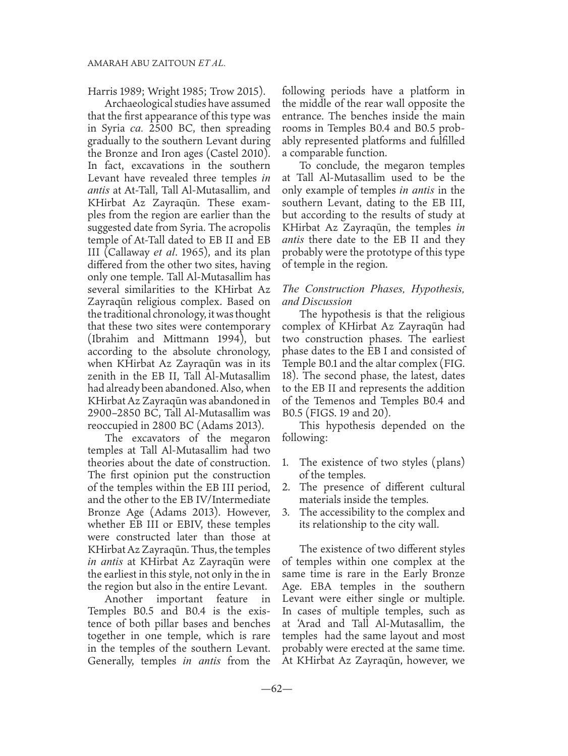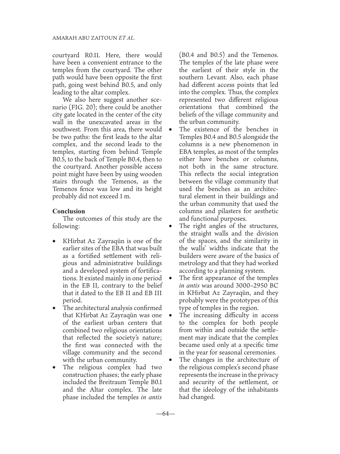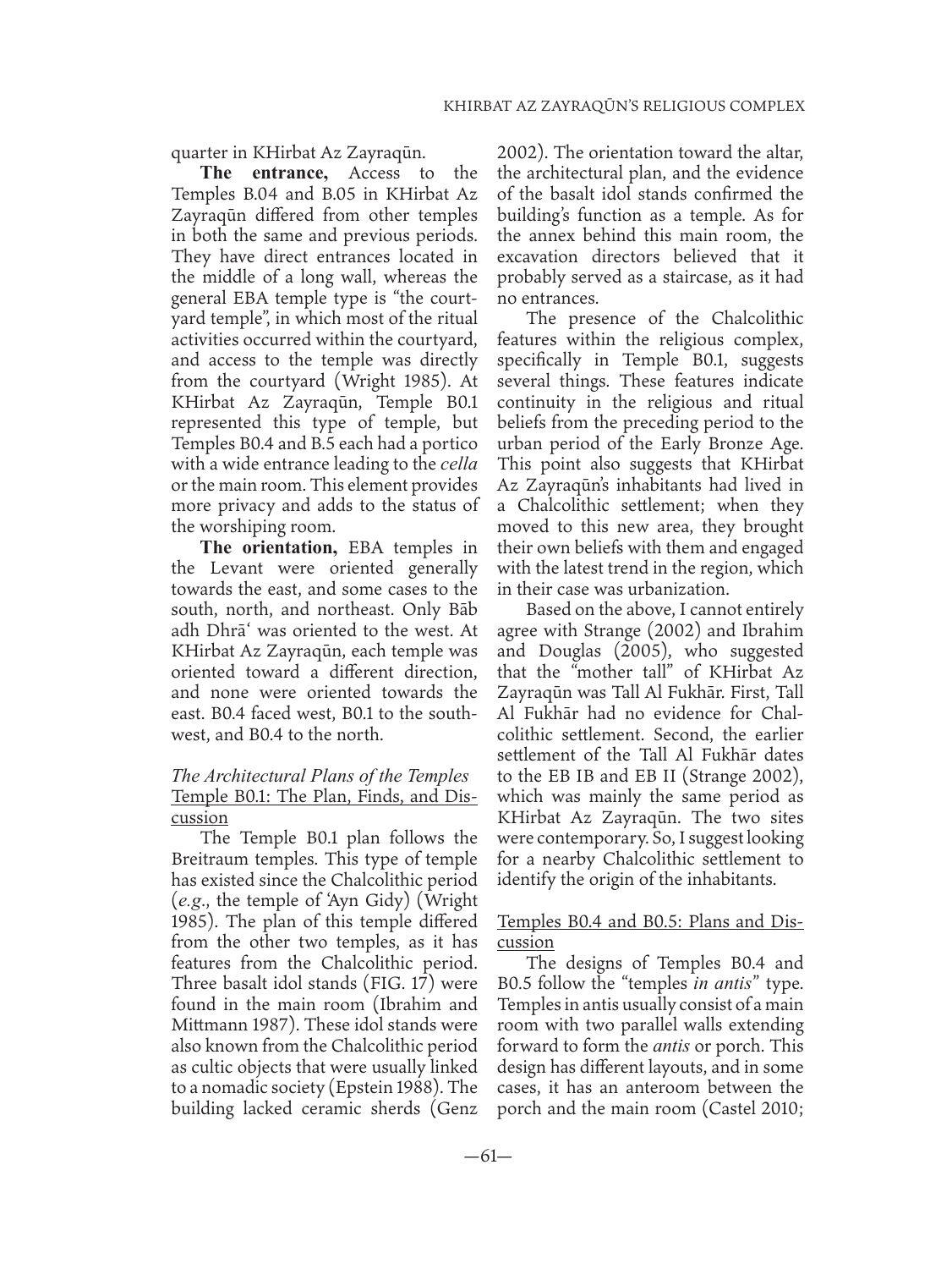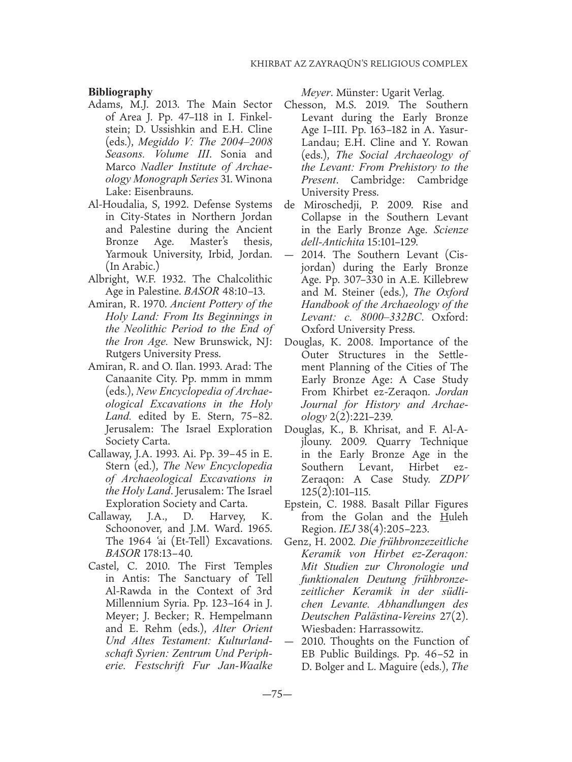 Documentation, Re-assessment and Re-interpretation for KHirbat Az Zayraqun’s Religious Complex, and a Suggested 3-D Reconstruction during the Early Bronze Age I, II and III