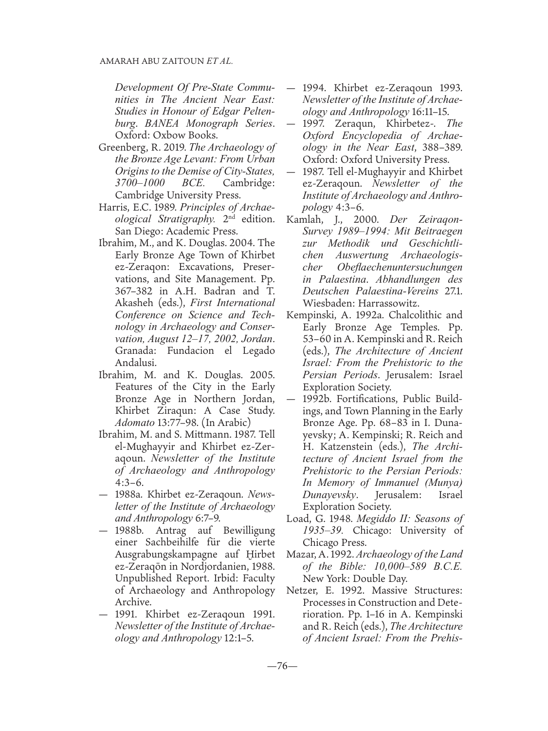 From Documentation to Reconstruction of Late Bronze Age Temples in Jordan: The Case of the ‘Amman Airport and Al Mabrak Education Is the First Step of Protection before Archaeological Excavation: KHuraybat As Suq Site as a Challenge Example Documentation, Re-assessment and Re-interpretation for KHirbat Az Zayraqun’s Religious Complex, and a Suggested 3-D Reconstruction during the Early Bronze Age I, II and III Ayn GHazal Two-Headed Bust at Louvre Abu Dhabi: Exploring Stories of Cultural Connections The New Dushara Sanctuary at Al Mahafir in Petra Rapid Tectonic Evolution of the Levant during the Pleistocene and Its Implications for Topography and Local Lake Formation and Disappearance: Factors Affecting Human Migration and Settlement Jordan Cultural Landscapes: Making Significant Experience at the Folklore and Popular Traditions Museums (ʻAmman) Digital Library of Living Traditions: A Proposal for the Intangible Cultural Heritage in Jordan Preliminary Report on the Excavation of a Roman Bronze-Casting Workshop on the Lower Terrace of the Temple of Zeus ( Jarash/Gerasa) Celebrating 66 Years of Acheulean Exploration and Discovery in the Central Al Azraq Basin, Jordan A Large Courtyard Building from the Byzantine and Umayyad Periods in Front of the Nymphaeum in Jarash ( Jordan): First Results of the Eastern Jarash Project A First Insight into the Intra Muros Settlement Dynamics of the Gadara Hilltop, from the Hellenistic Period to Modern Times Insights into Investigation and Building Conservation in the Old Village of Al Harah Al Fawqa in Umm Qays, Jordan: Reconstructing the Historic Roof of the Al Madafah in Bayt Ar Rusan The Food Production Activities in the EB I Site of Jabal Al Mutawwaq: Evidence from the Settlement and the Necropolis Tokens and Counters from Early Bronze Age Jordan: The Case Study of KHirbat Al Batrawi and Comparisons The Madaba Regional Archaeological Museum Project (MRAMP) Workshop Physical in situ and Digital/Virtual Reconstructions and the International Heritage Charters and Conventions: A Critical Overview The Goddess of Victory at Al Humaymah and in Nabataean Art Nabataean, Ancient North Arabian, Greek and Latin Inscriptions from Bayir (Southeast Jordan): A Reassessment Was Sahab the First Ammonite Capital? Where DHiban Meets ‘Ataruz: Bayadah, Ancient Roads and the Mesha Inscription The ‘Abbasid Family Estate at Al Humaymah: New Insights from Analysis of the Ceramics from Field F103 The Origins of the Ammonites Turning Downtown ‘Amman into a Tourist Destination through the Exposure of the Roman Baths at Al Hashimi Street Cultural Heritage and the Fight Against Illicit Trafficking in Jordan: The Project to Prevent Illicit Trafficking The Excavation in Umm Qays, Jordan, 2005–2017 KHirbat As Sar (Sarah), a Site between the Ammonite and Mamluk History of Jordan Conservation and Community Participation at the Palace of Prince An Naq Al Jamdar in Historic Cairo for Use at Similar Sites KHirbat Al Batrawi 2020–2022: The Palace of the Copper Axes and the North-Eastern City Fortifications The Shobak Project: A Programme to Support the Socio-Economic Recovery in the Protected Area of Ash SHawbak Castle Zuwarah (Zughar) in the GHawr As Safi, Jordan: Interdisciplinary Research and Study of the Discoveries of an Early Byzantine and Medieval Islamic Commercial City in Palaestina Tertia - Southern Bilād Ash SHām Redefining Societal Transformation in the Early Bronze Age of Jordan: Recent Discoveries and Chronological Modeling at KHirbat Iskandar Curative Water in Jordan: Therapeutic Agents, Tourism and Archaeology Capacity Building for Sustainable Preservation The Lordship of Transjordan: Settlement Patterns, Economy and Society in the Crusader Period Sustaining Good Practice in Jordanian Museum Education “Sea Peoples” on Tall Zar‘a in Northern Jordan?: Material Culture, Cult and Political Power Far Away from the Mediterranean Cities The Technical School of the Central Nabataean Temples Historical Islamic Architecture in Northwestern Jordan: Heritage Mosques in Irbid Governorate The Christian Community of Rihab during the First Phase of Islamic Domination through Epigraphic Sources Herodian Stone and Stucco Artworks in the Royal Palace of Mukawir (Machaerus)Thumbnails