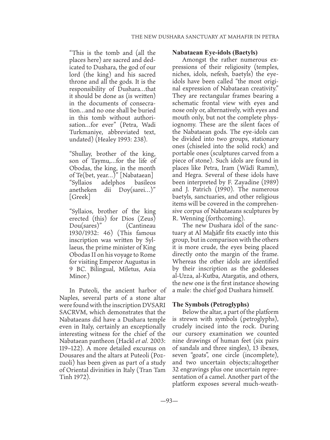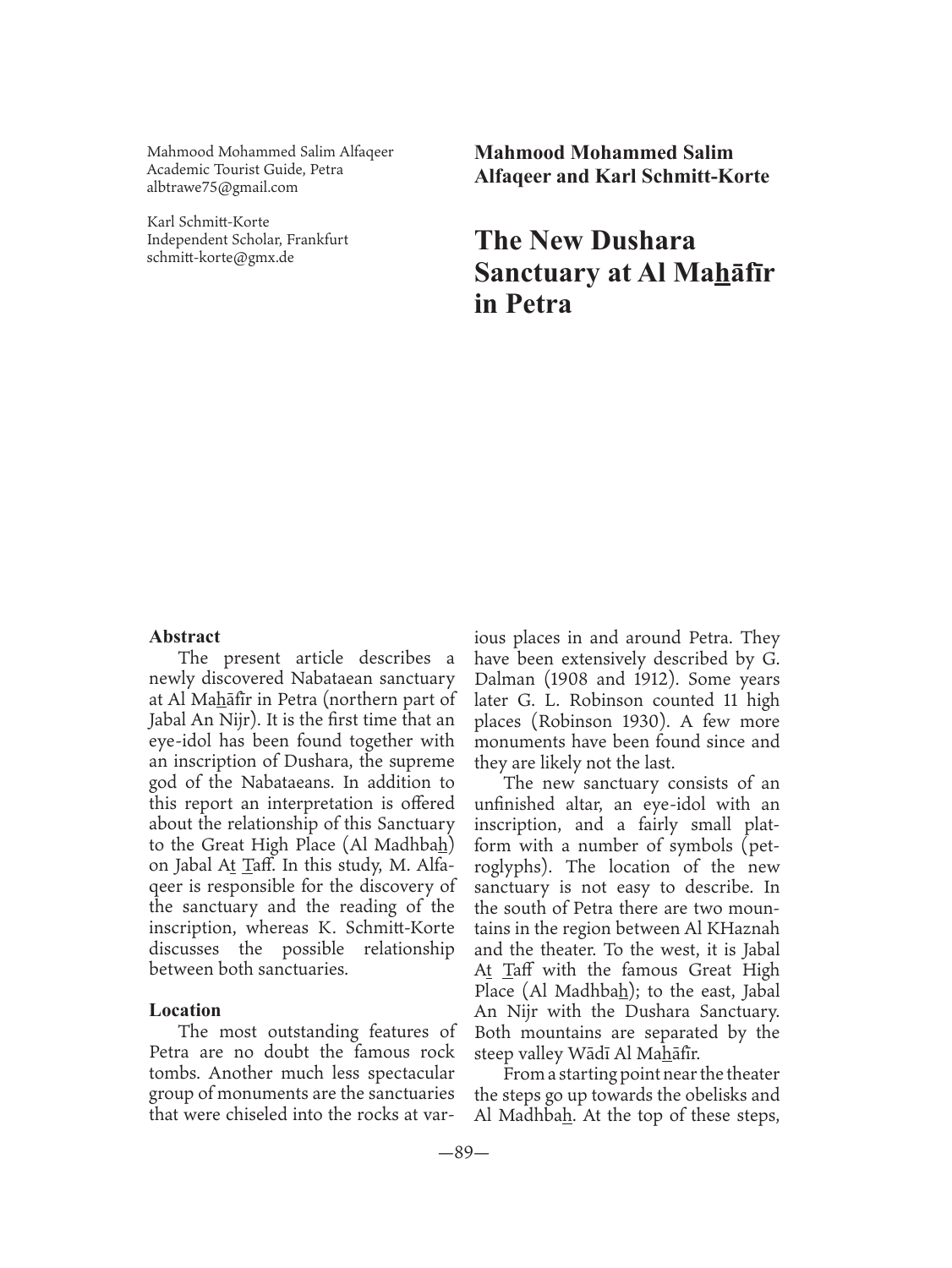 The New Dushara Sanctuary at Al Mahafir in Petra
