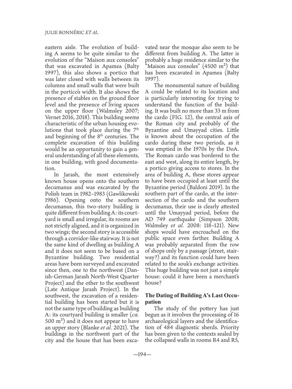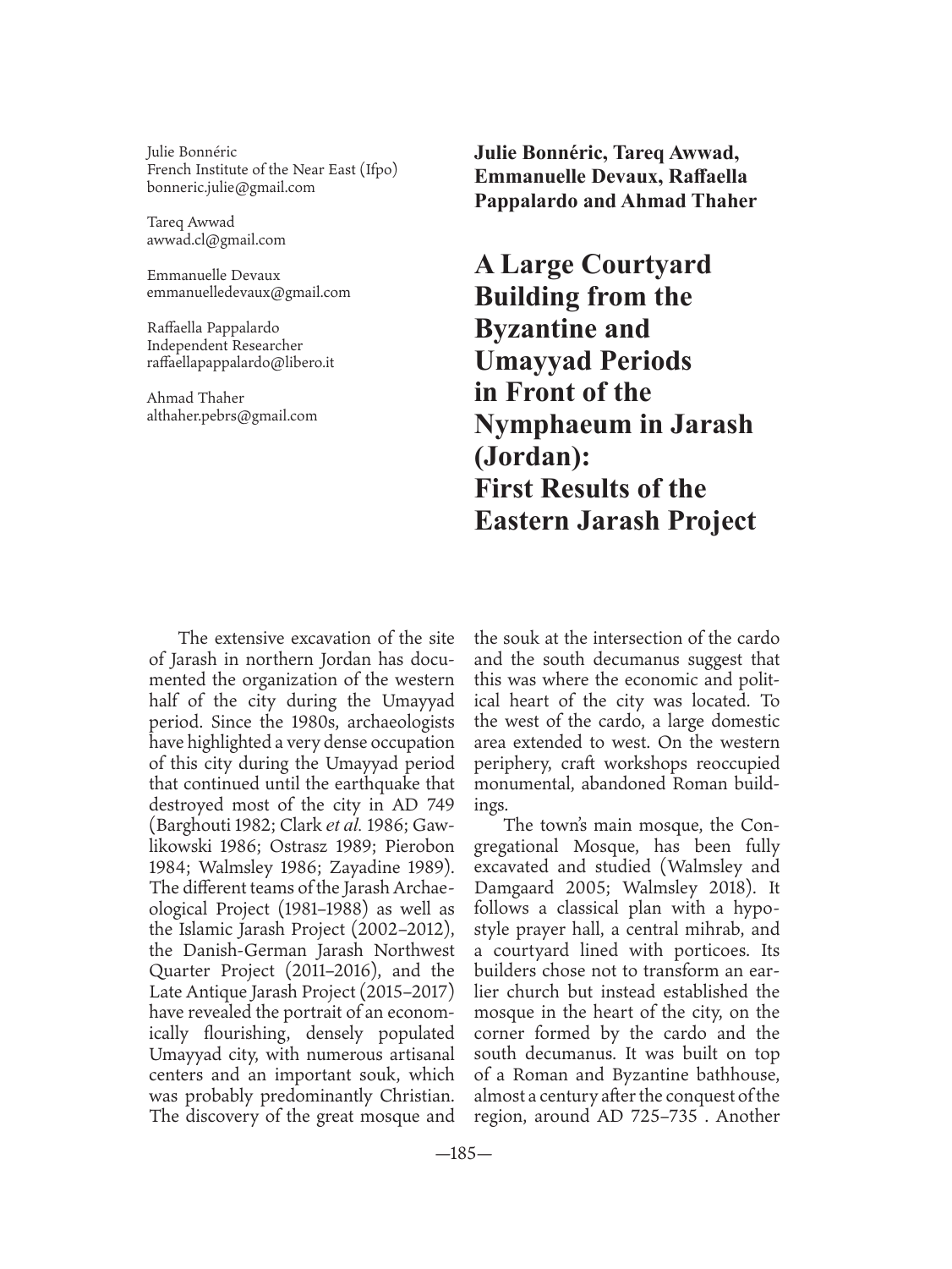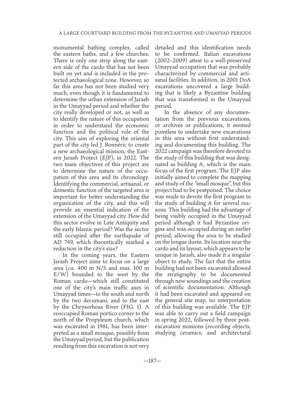 A Large Courtyard Building from the Byzantine and Umayyad Periods in Front of the Nymphaeum in Jarash ( Jordan): First Results of the Eastern Jarash Project