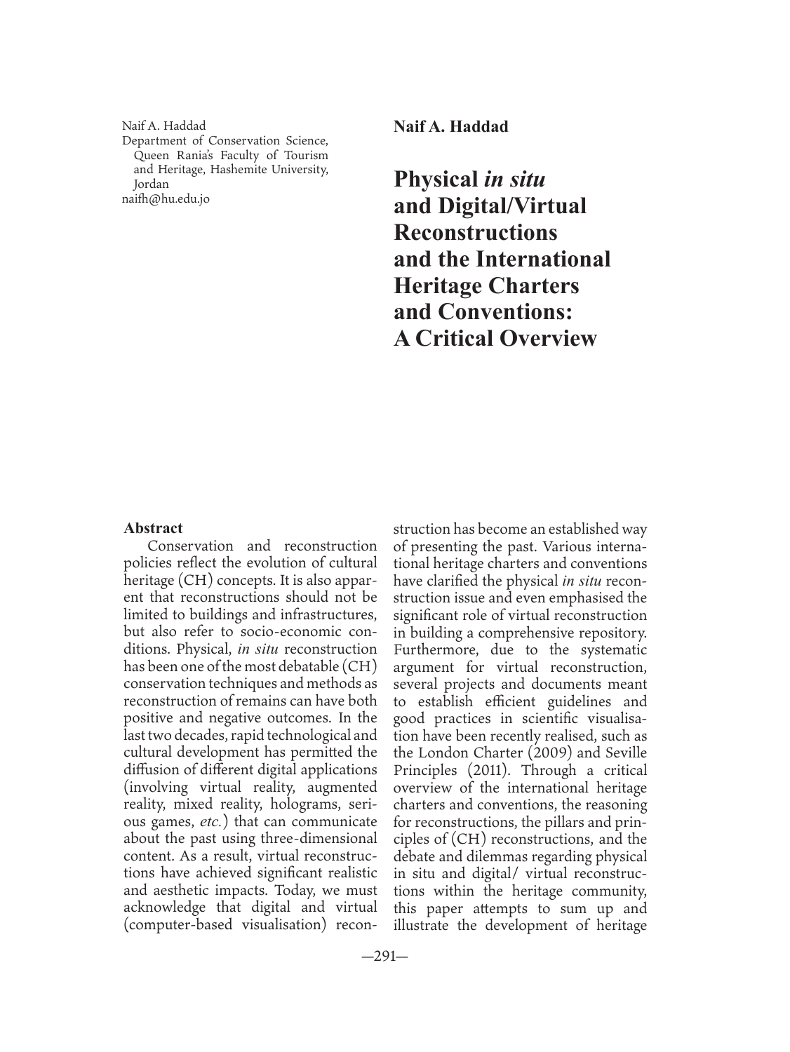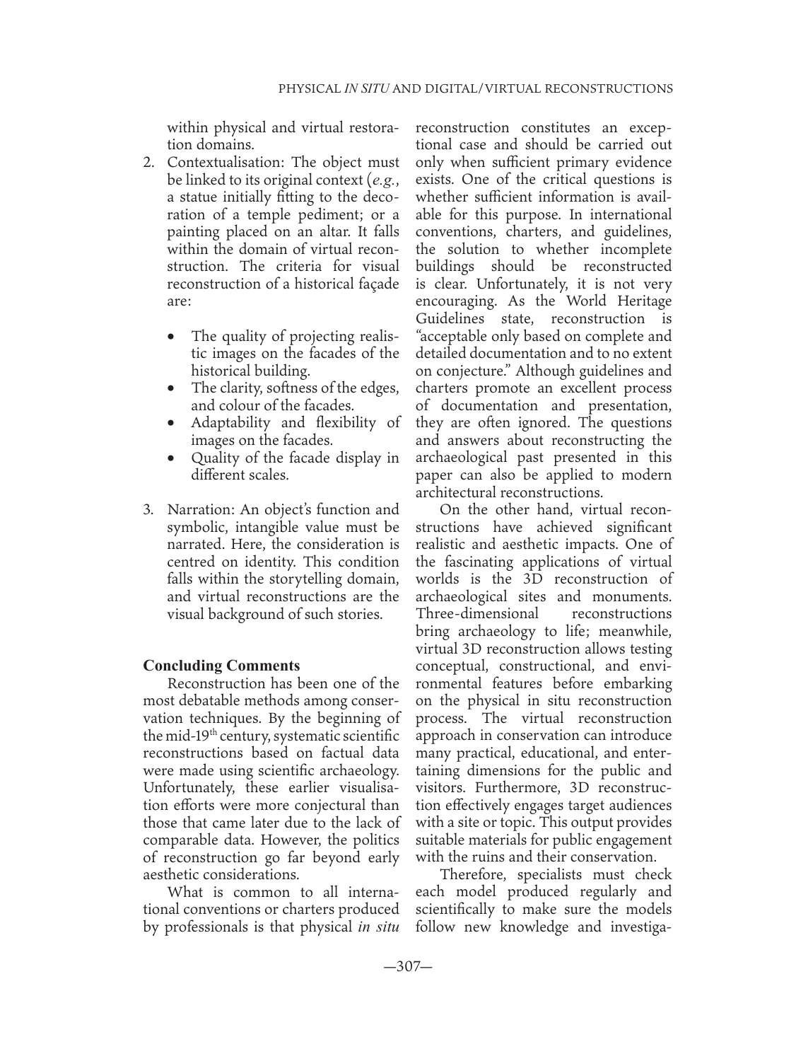 Physical in situ and Digital/Virtual Reconstructions and the International Heritage Charters and Conventions: A Critical Overview