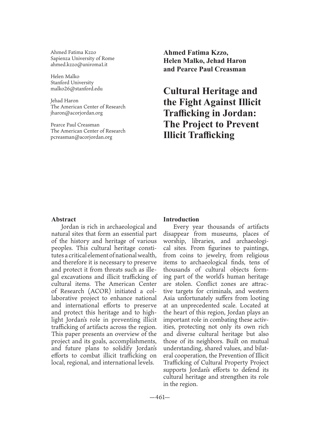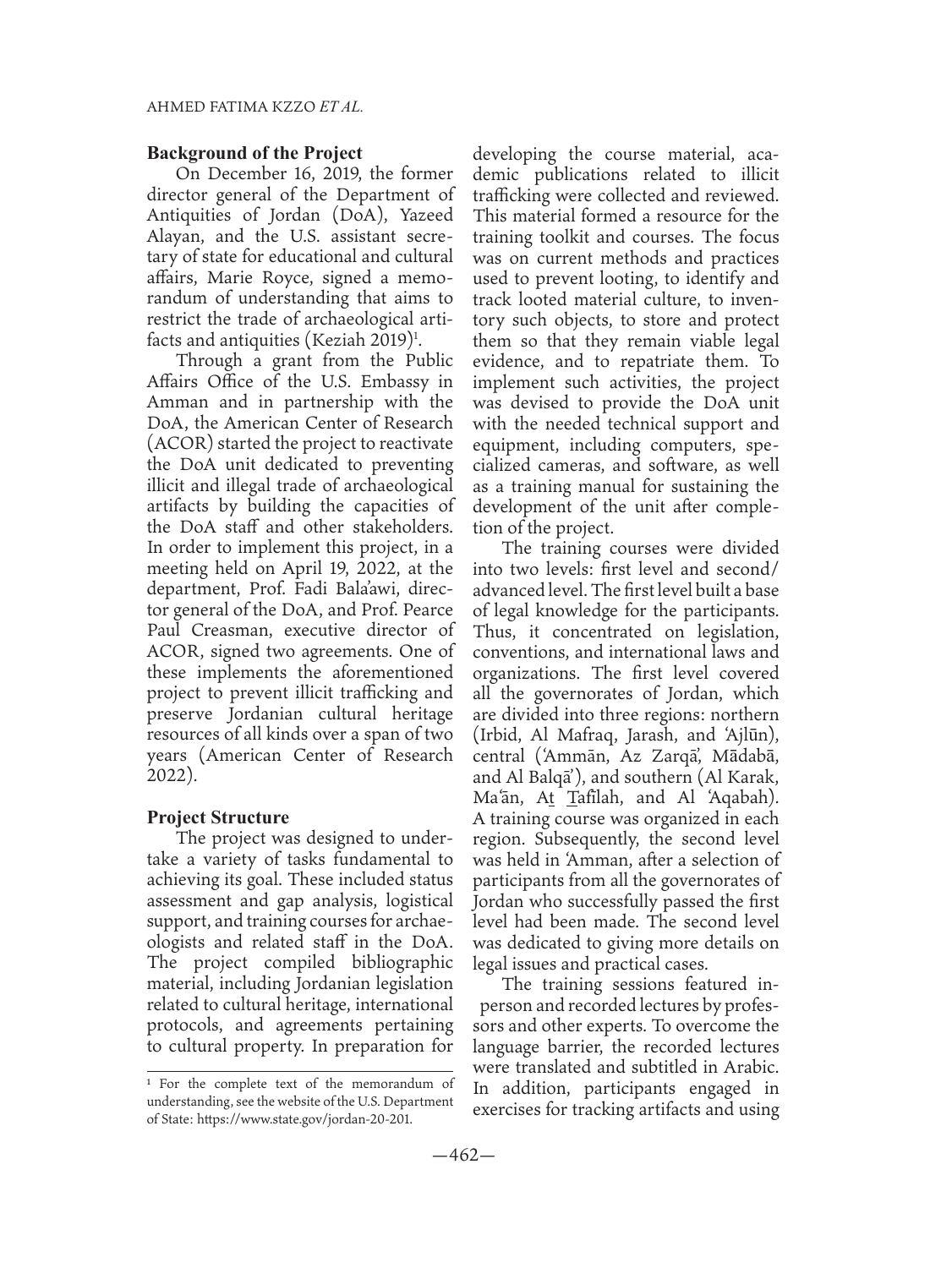 Cultural Heritage and the Fight Against Illicit Trafficking in Jordan: The Project to Prevent Illicit Trafficking