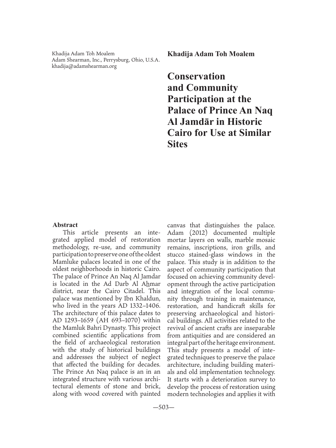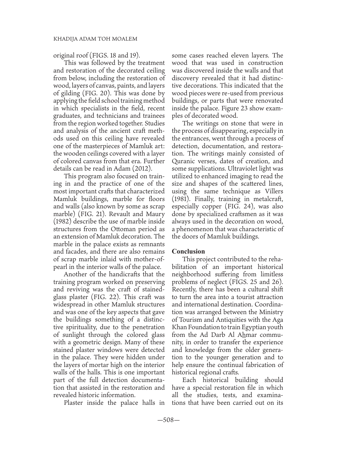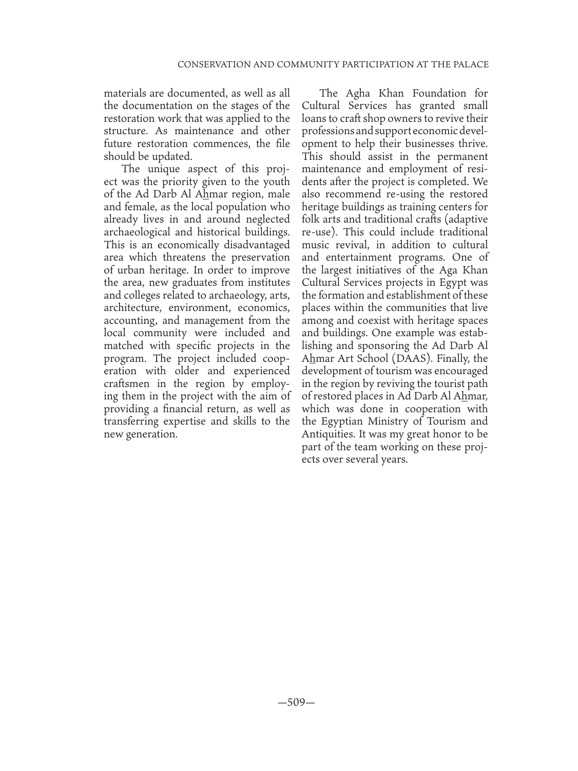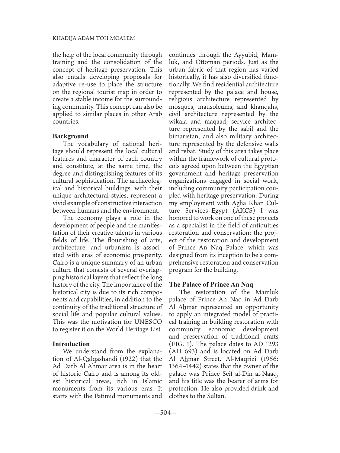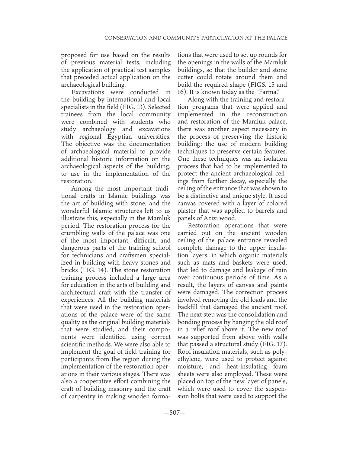 Conservation and Community Participation at the Palace of Prince An Naq Al Jamdar in Historic Cairo for Use at Similar Sites