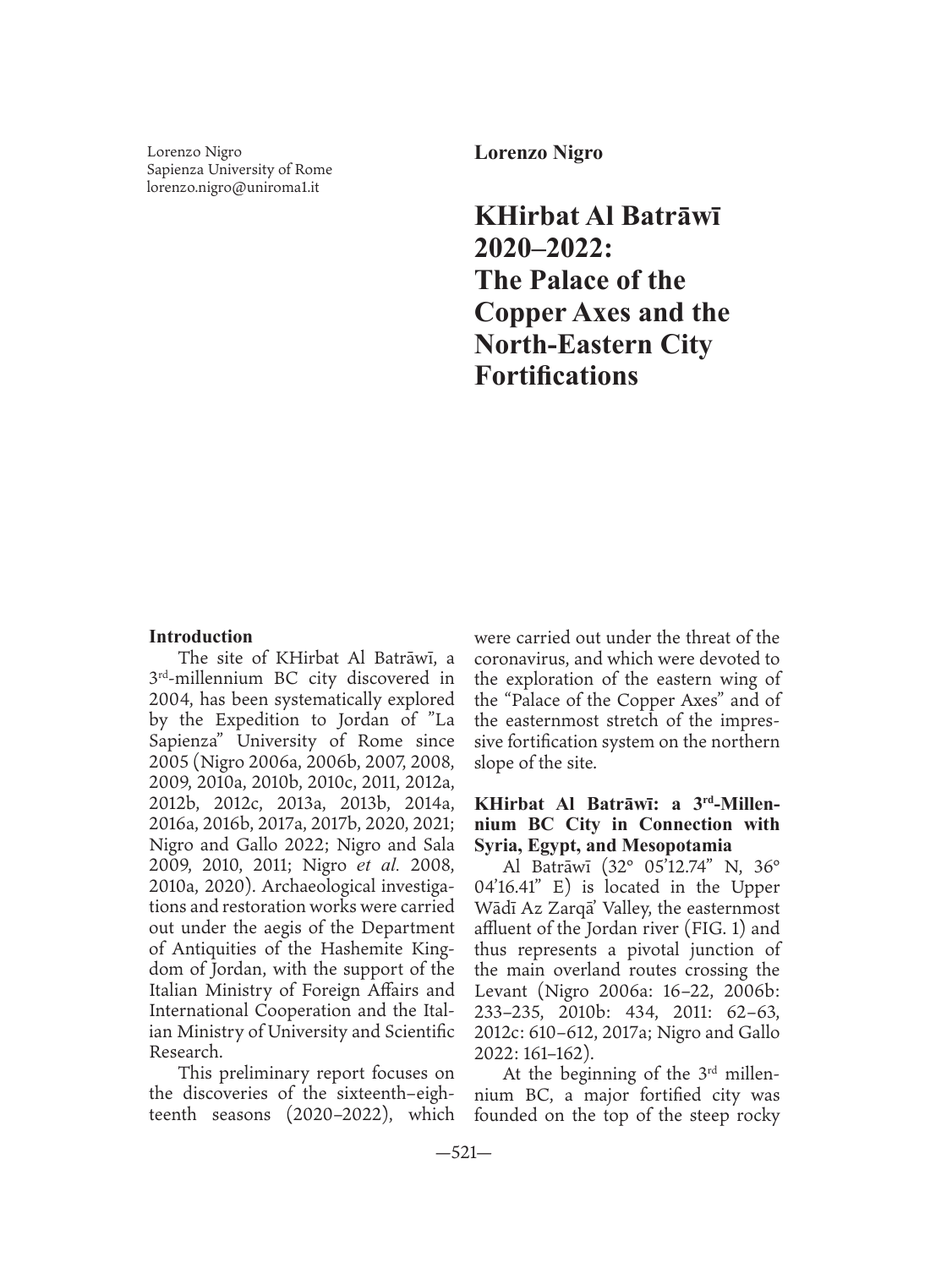KHirbat Al Batrawi 2020–2022: The Palace of the Copper Axes and the North-Eastern City Fortifications