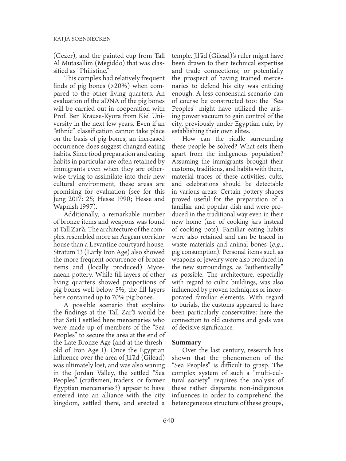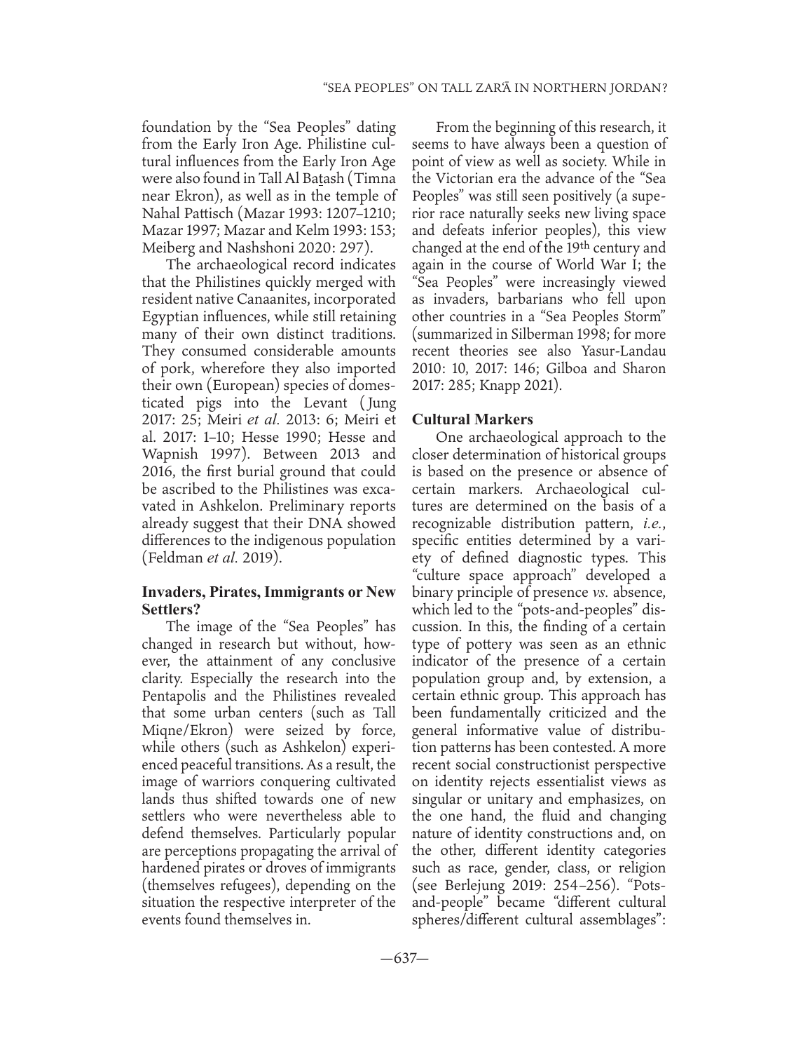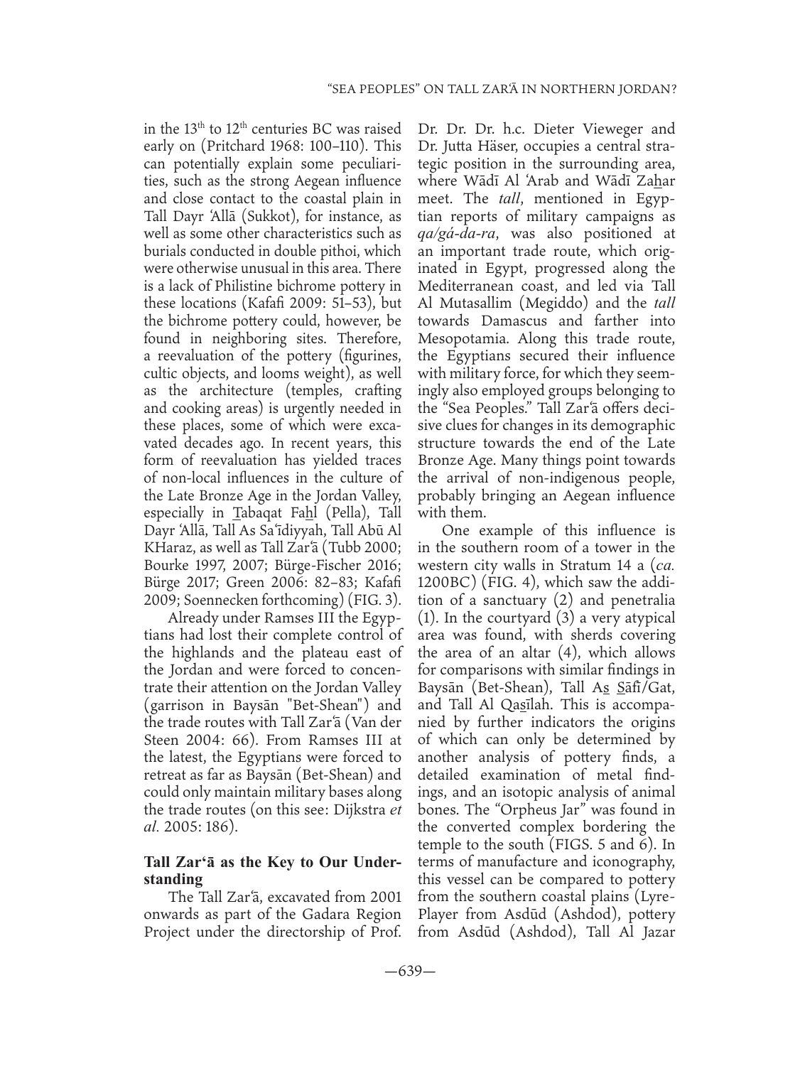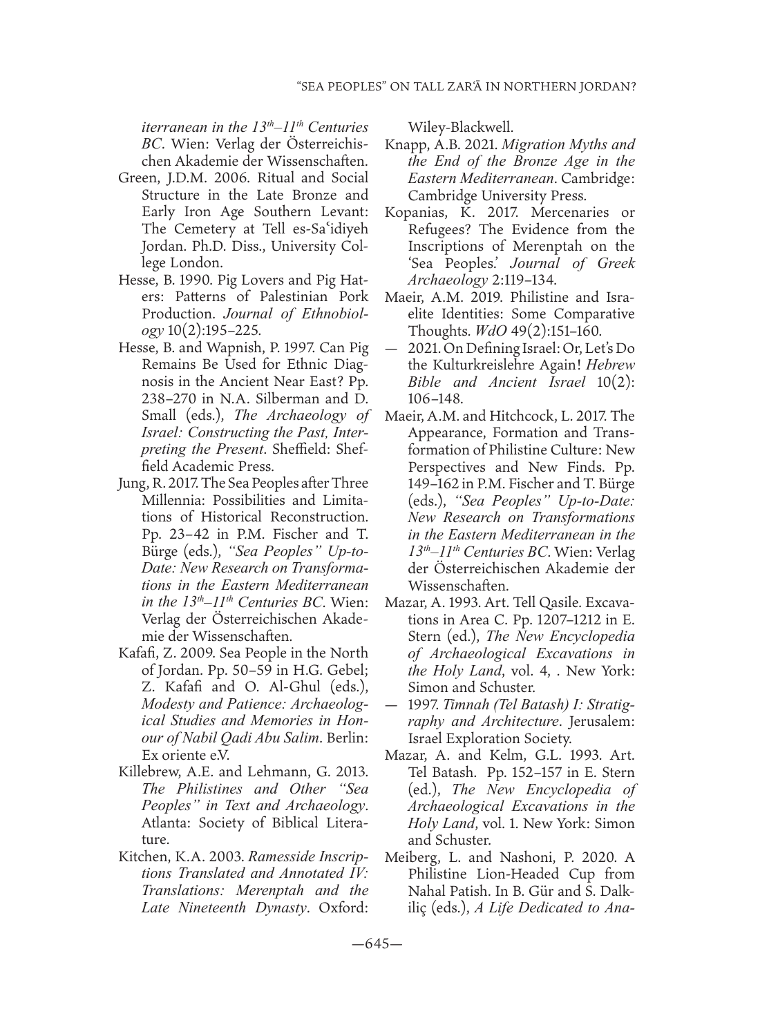 “Sea Peoples” on Tall Zar‘a in Northern Jordan?: Material Culture, Cult and Political Power Far Away from the Mediterranean Cities