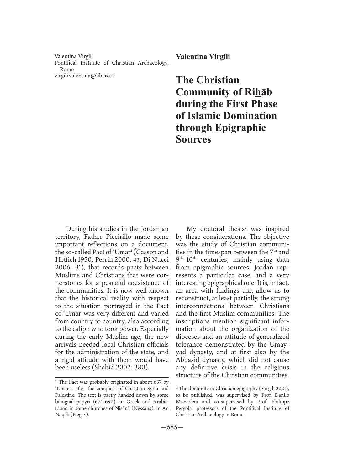 The Christian Community of Rihab during the First Phase of Islamic Domination through Epigraphic Sources