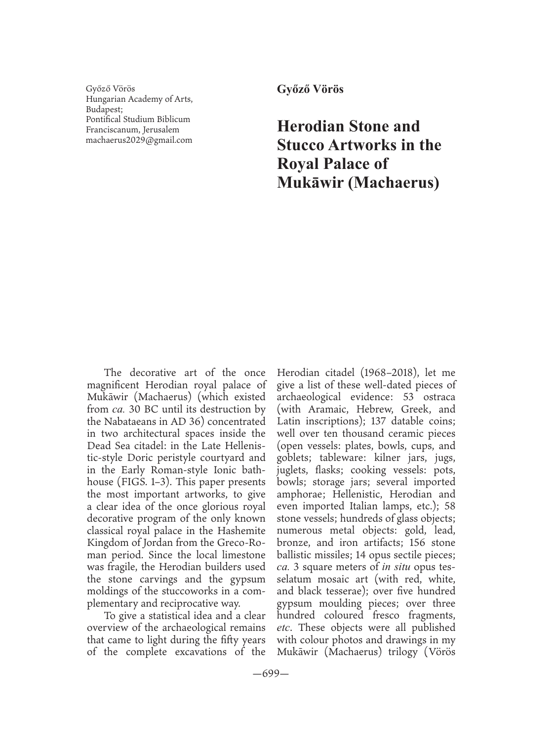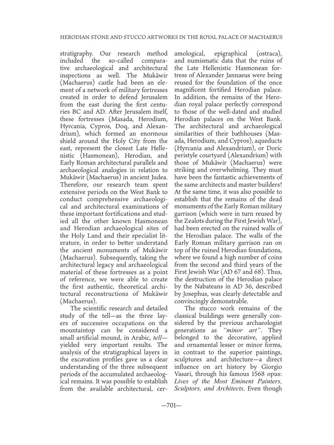 Herodian Stone and Stucco Artworks in the Royal Palace of Mukawir (Machaerus)
