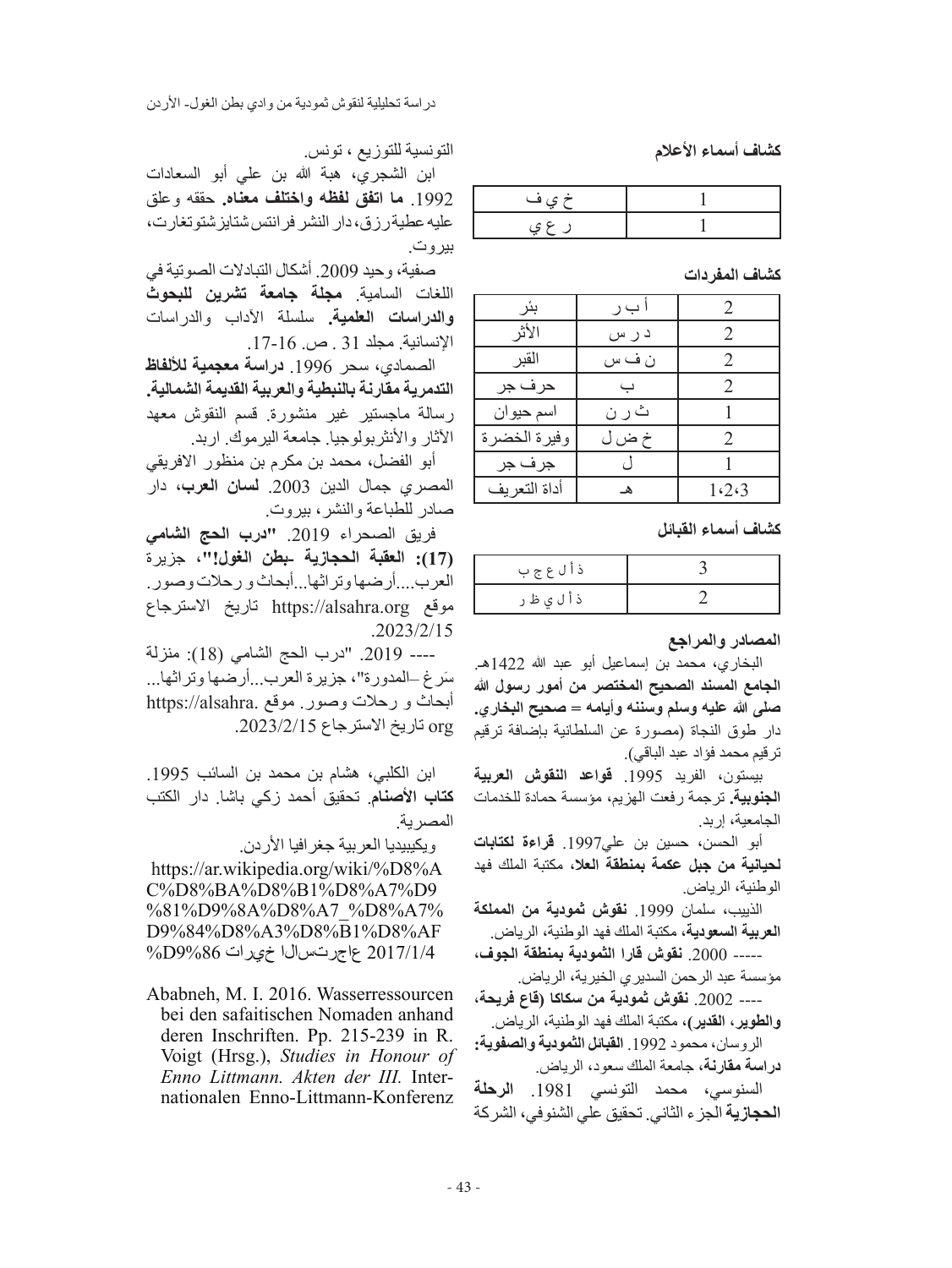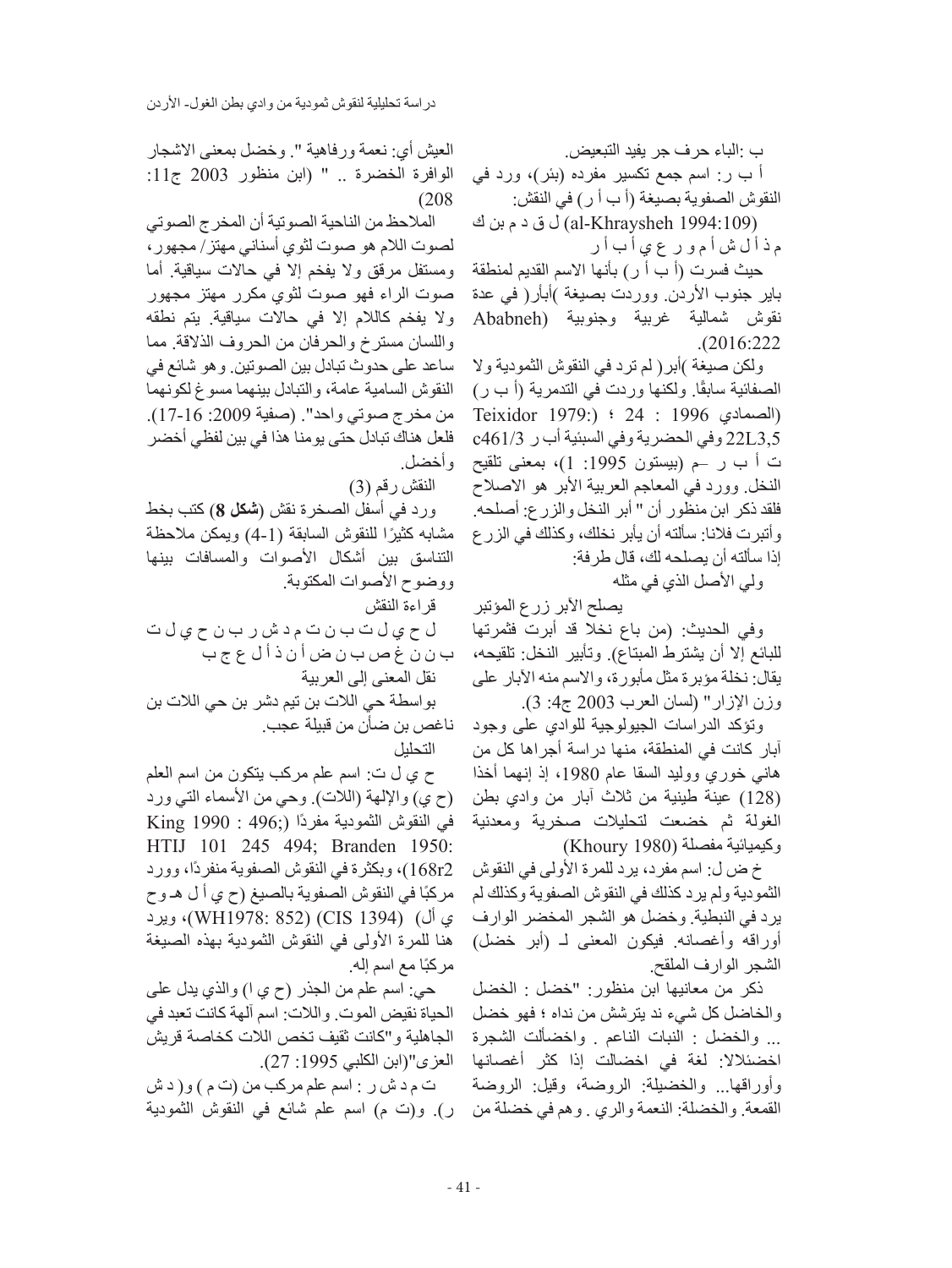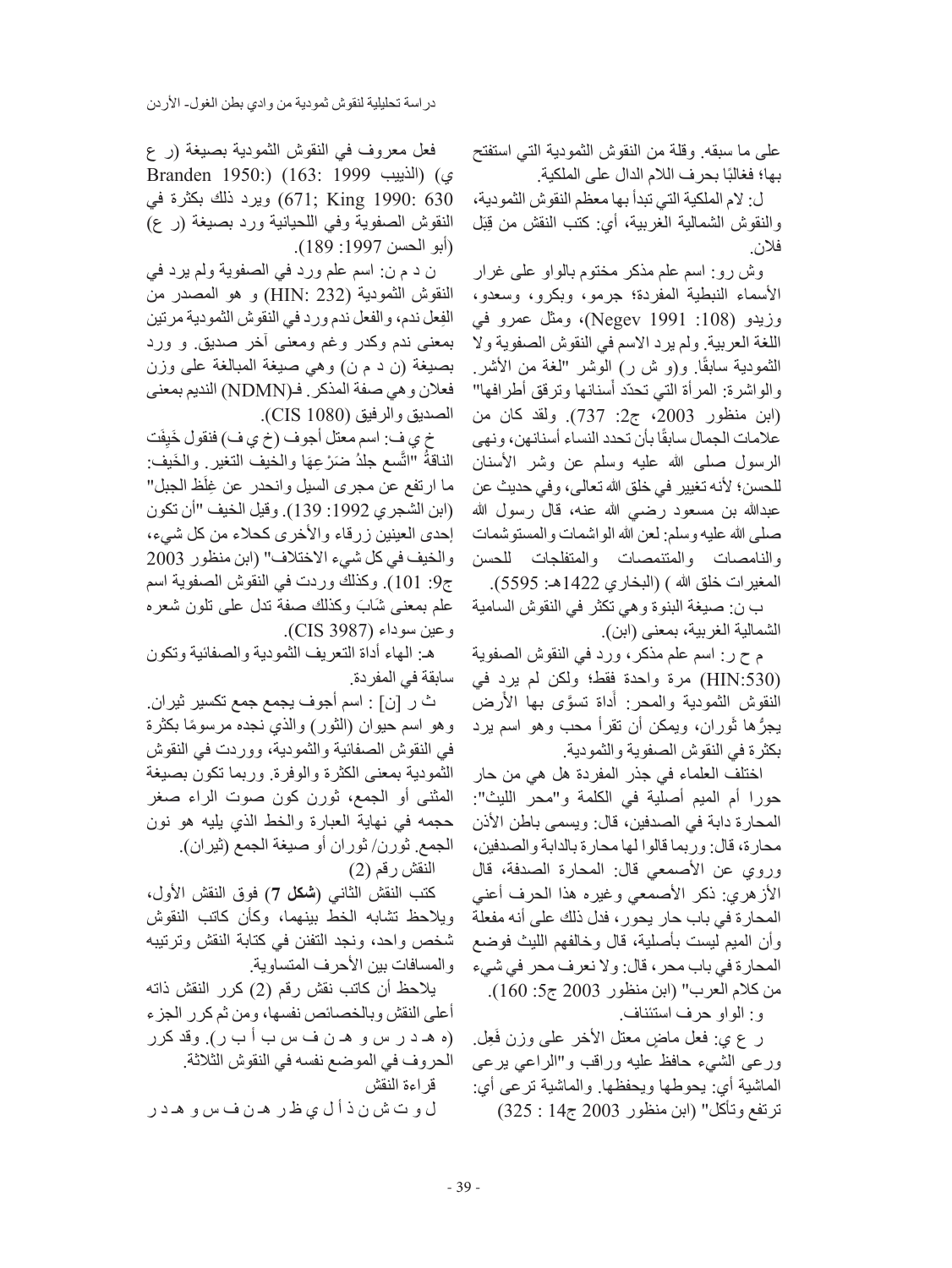 دراسة تحليلية لنقوش ثمودية من وادي بطن الغول - الأردن