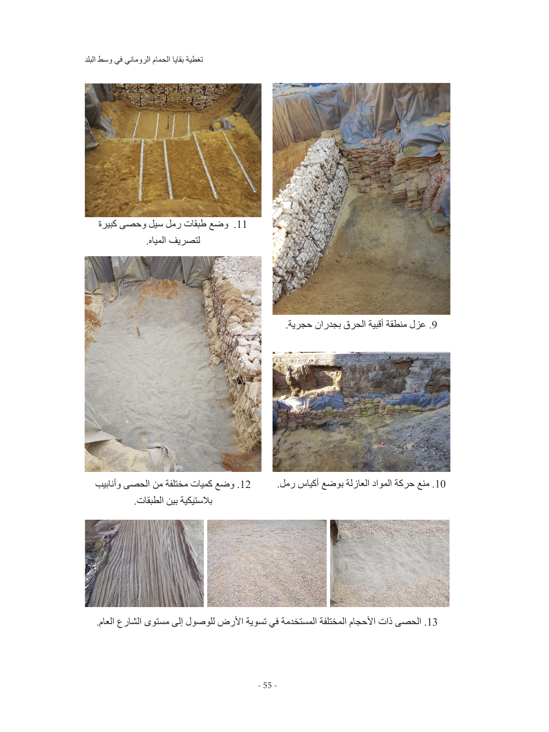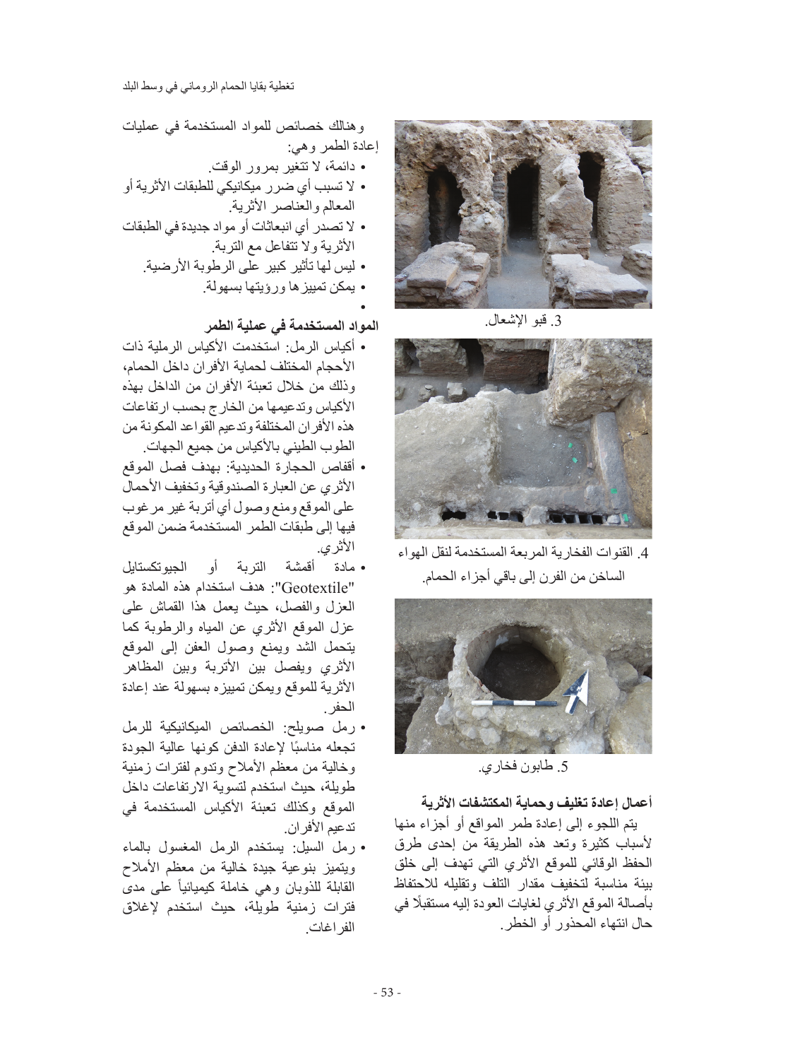 حماية المواقع الأثرية من خلال تغطيتها (إعادة طمرها)، تغطية بقايا الحمام الروماني في وسط البلد